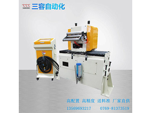 左右偏摆送料机采用三棱PLC来控制设备的电控系统,电机系统与送料机滚筒用同步带轮连接,从而实现送料滚筒的精准控制,另外一套伺服马达系统与精密滚轮丝杆用同步带连接,从而完成精准的左右移位控制,在左右偏摆送料机连续圆片冲压的过程中,圆片边角之间的最小距离可设置在0.5mm以内,且设备误差可控在正负0.008mm以内,可以满足高精密材料的冲压生产。